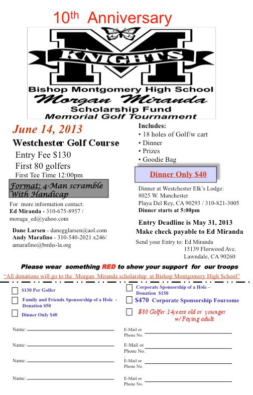 10th Annual Morgan Miranda Scholarship Fund Memorial Golf Tournament